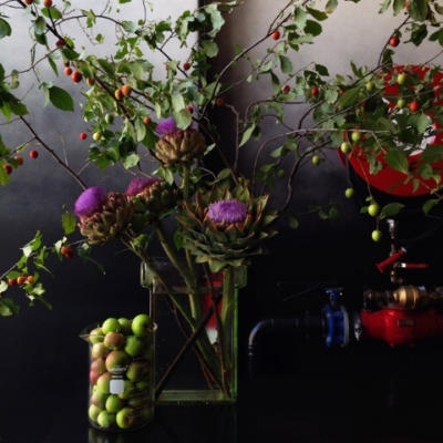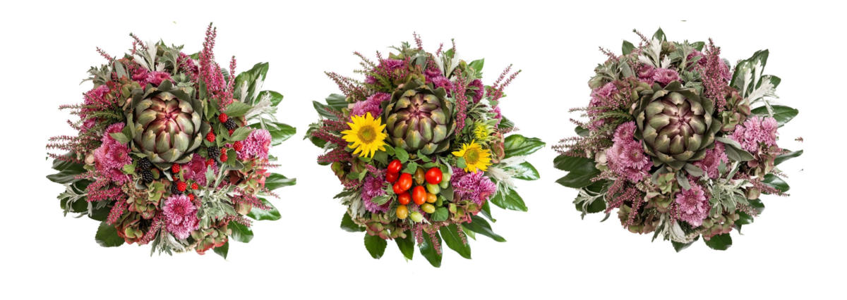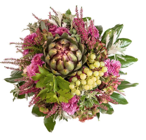 centrepieces. By introducing the edible globe artichoke, florists are producing unique and bold designs, with strong shapes and a diversity of textures and colours. These