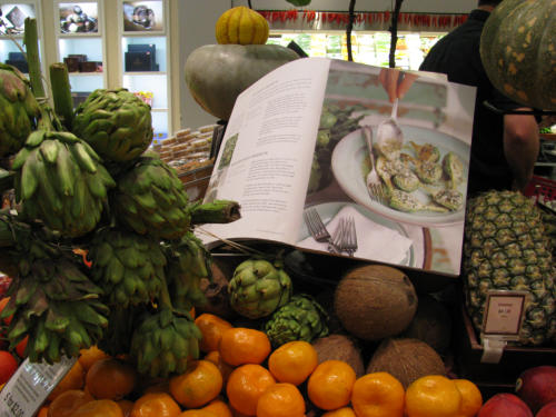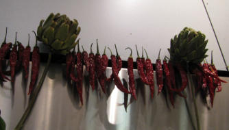 displaying his globe artichokes in