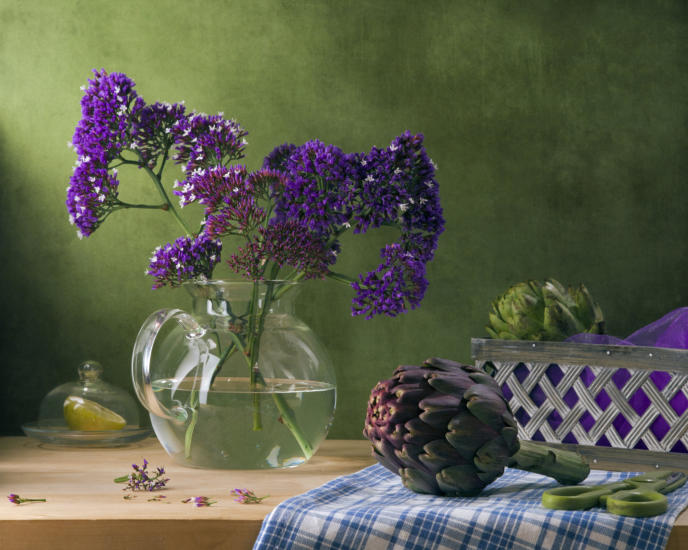 make exceptional and long lasting additions to floral arrangements. However, florists are also using the actual artichoke globe in their floral exhibits for a diverse