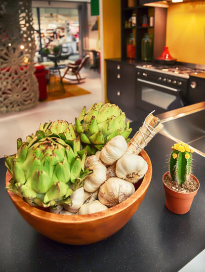 artichoke-shaped lights, candles, containers, bowls and other items so interior designers can include these in their designs. The globe artichoke’s vibrant green or purple